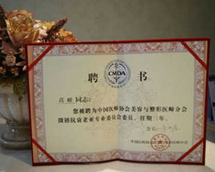高峻主任为中国医师协会美容与整形医师分会创口小抗衰老委员会委员